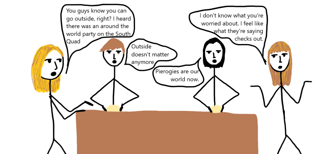 It isn’t just my family creating creating pierogi lore – The dish is surrounded by a rich, strange mythology that spans centuries. “Ukrainian-foods.com” claims that my Ukrainian ancestors sacrificed cheese pierogies during the young moon, near the source of spring water. Other cultural groups have stories about explorers, warriors and saints bringing pierogies to the masses. The true origins of the pierogi are ancient and unknowable though – the tradition of wrapping carbs in other carbs appears to be as old as civilization itself.